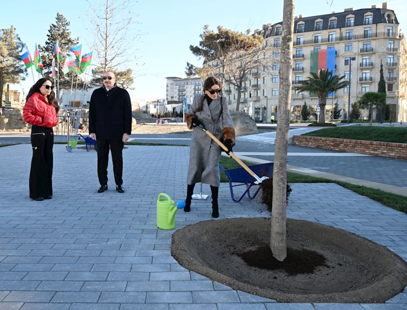 Prezident İlham Əliyev, birinci xanım Mehriban Əliyeva və qızları Palıd meydanı parkında ilk palıd ağaclarını əkiblər.