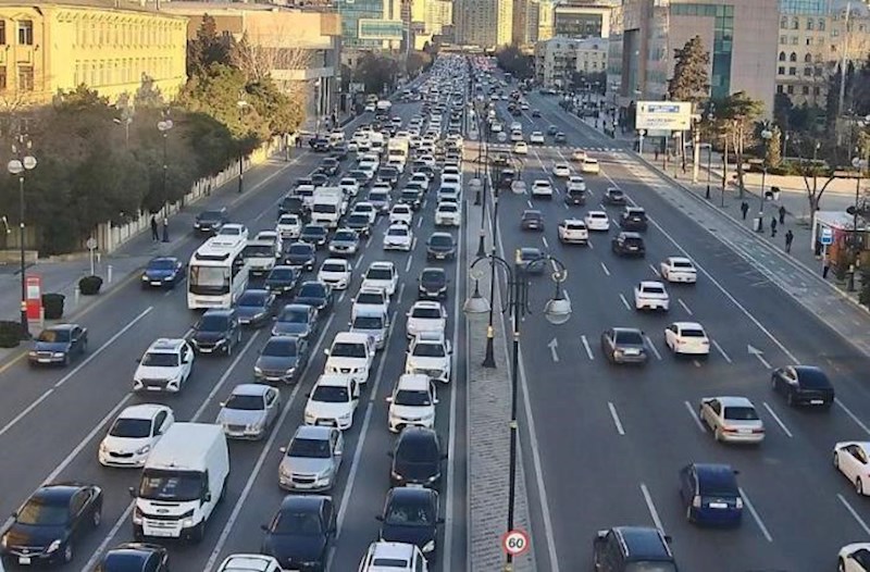 Paytaxt Bakının bir sıra küçə və prospektlərində nəqliyyatın sıxlığı müşahidə olunur.