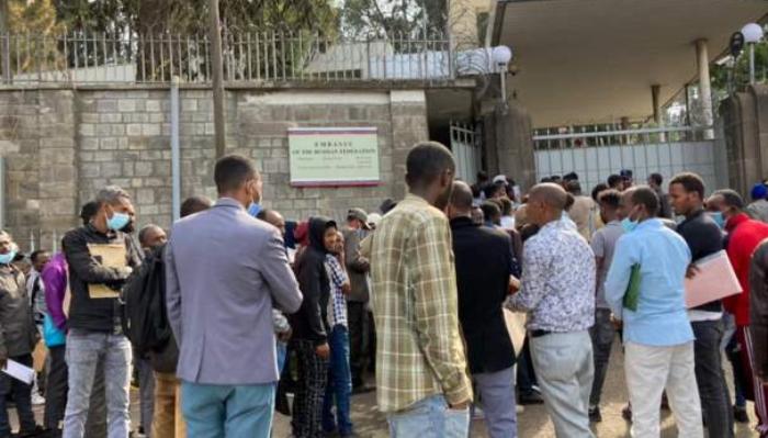 Səfirliyə üz tutan efiopiyalı gənclərin çoxu şəxsi sənədlərini üzərlərində daşıyırlar. Bəziləri deyir ki, Rusiyada yüksək maaşlar barədə şayiələr eşidiblər.