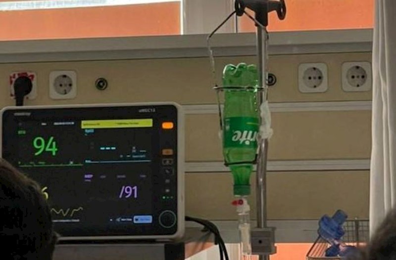 Sosial şəbəkədə qazlı içki şüşəsində xəstəyə sistem qoşulması ilə bağlı görüntü yayılıb.