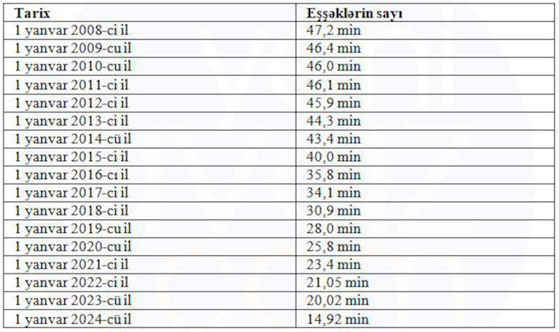 Onu da bildirək ki, son 9 ildə Bakı şəhərində eşşəklərin sayı aşağıdakı kimi olub: