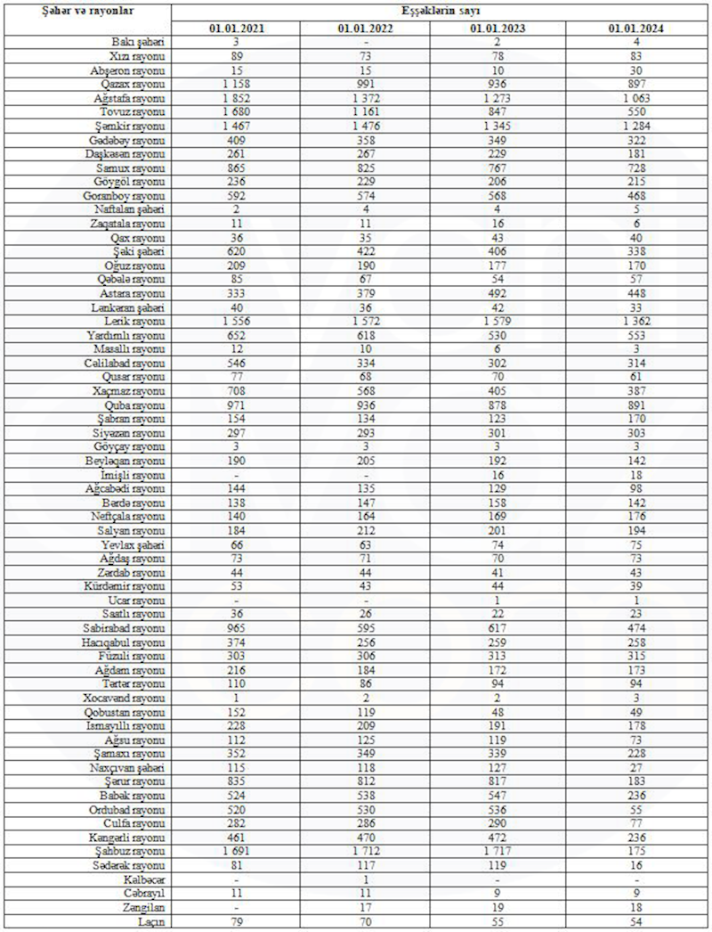 Azərbaycanın şəhər və rayonlarında eşşəklərin sayı belə olub: