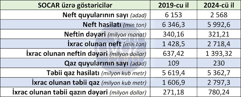 Açıqlanan məlumatlardan da göründüyü kimi, 2019-cu ildə SOCAR hər quyudan orta hesabla 1 031 ton neft hasil etdiyi halda, 2024-cü ildə hər quyudan orta hesabla 2 333 ton neft hasil edib.