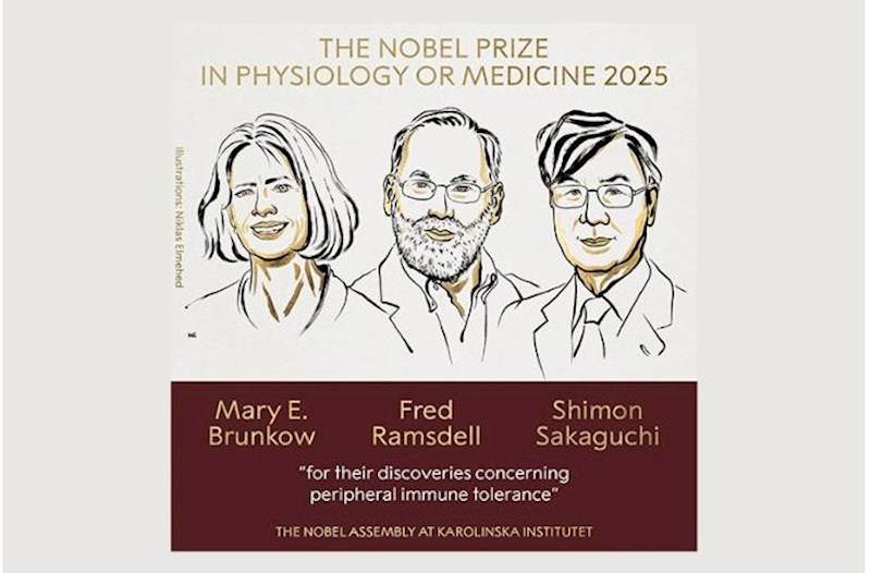 2025-ci il üçün Fiziologiya və Tibb üzrə Nobel Mükafatı Meri Brunkov, Fred Ramsdell və Simon Sakaquçiyə veriləcək.