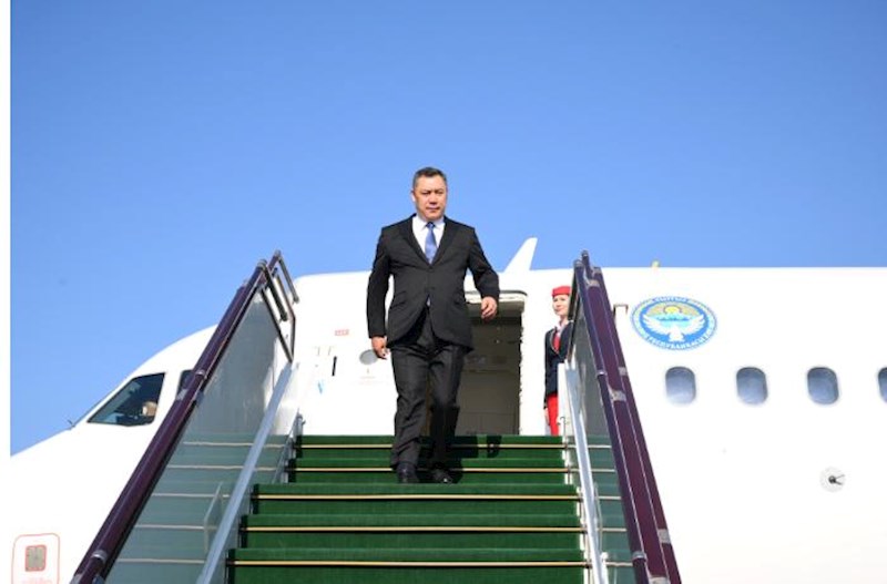 Qırğızıstan Prezidenti Sadır Japarovu hava limanında Azərbaycanın elm və təhsil naziri Emin Əmrullayev və digər rəsmi şəxslər qarşılayıblar.