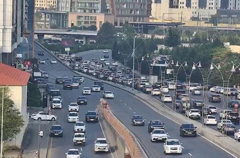 Paytaxt Bakının bir sıra küçə və prospektlərində nəqliyyatın sıxlığı müşahidə olunur.