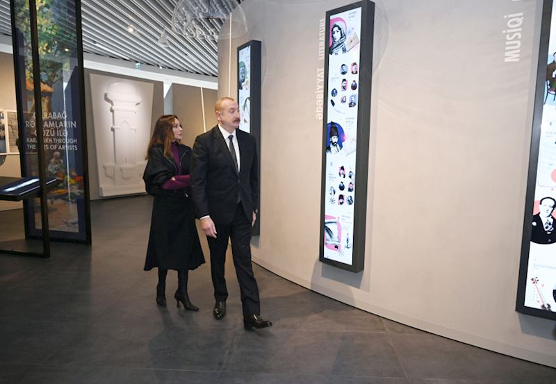 Muzeyin “Qarabağ və Şərqi Zəngəzur. Əsrlərin hekayəsi” adlı birinci zalında Azərbaycanın mədəniyyət beşiyi olan Qarabağın təbii gözəlliyi, tarixi memarlıq baxımından zənginliyi təqdim edilir. Zalın divarındakı kitab instalyasiyalarında Ümummilli Lider Heydər Əliyevin bölgənin sosial-iqtisadi inkişafına verdiyi töhfələrə dair geniş məlumatlar var.