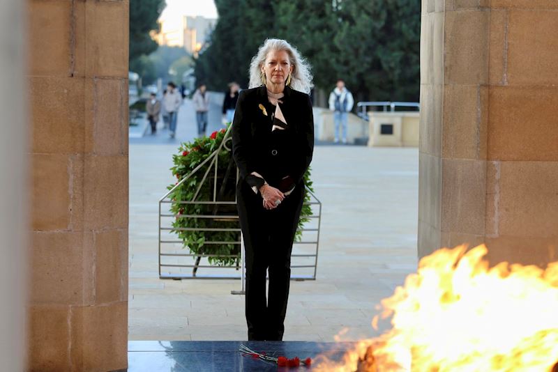 Qeyd edilib ki, Allison Huker Şəhidlər Xiyabanını ziyarət edərək həlak olanların xatirəsini ehtiramla yad edib.