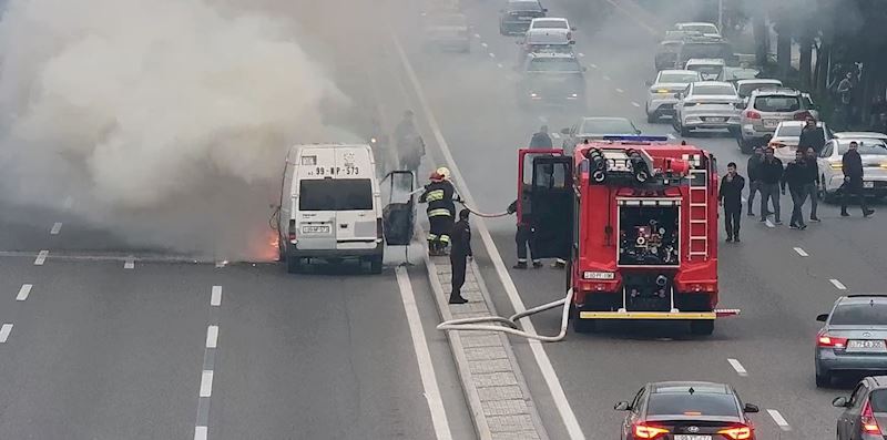 Nərimanov rayonu, Heydər Əliyev prospekti, əsas yolda avtomobillərin birində yanğın baş verib.