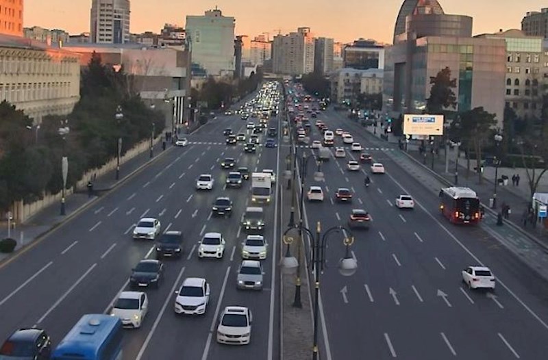 Paytaxt Bakının bir sıra küçə və prospektlərində nəqliyyatın sıxlığı müşahidə olunur.