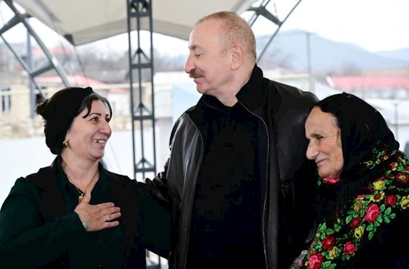Prezident İlham Əliyev: Artıq üç gündür ki, Ağdərə rayonunun dörd kəndinə yerləşmisiniz. Bu münasibətlə sizi təbrik edirəm.