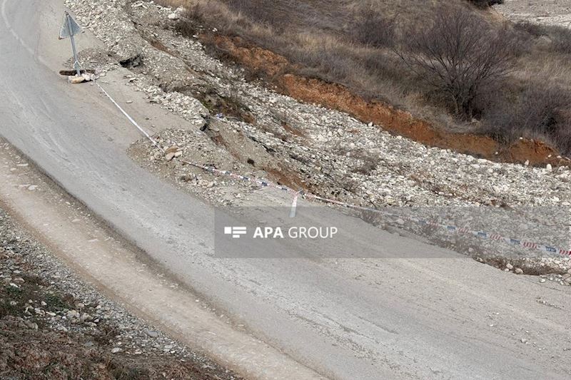 Bəzi ərazilərdə isə hərəkət zolağı tamamilə dərəyə doğru sürüşərək dağılıb. Bu səbəbdən yolun müəyyən sahələrində nəqliyyat vasitələrinin hərəkətində problem yaranıb. Yolun təxminən 30-40 metr hissəsi uçqun vəziyyətindədir.