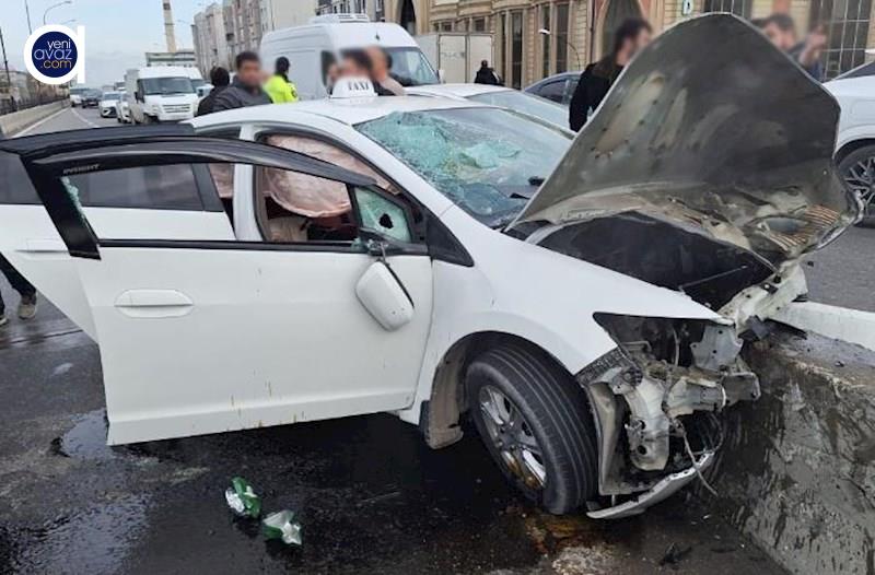 Belə ki, taksi sürücüsü idarəetməni itirib və nəticədə “Honda” markalı avtomobil yoldakı arakəsməyə çırpılıb.