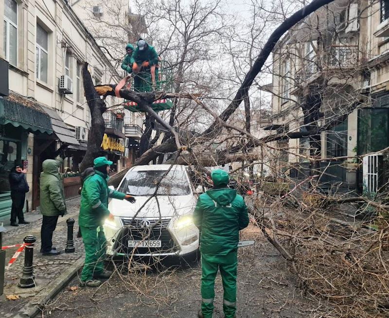 İki gün ərzində Bakı şəhərində davam edən şiddətli külək nəticəsində ümumilikdə 78 ağac sınıb.