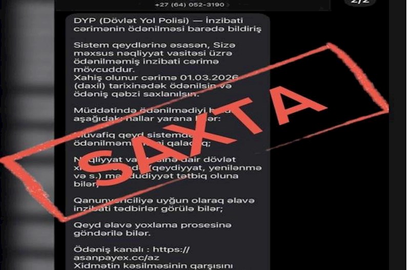 Bir daha xatırladırıq ki, inzibati cərimələrlə bağlı məlumatların yoxlanılması və ödənişlərin həyata keçirilməsi yalnız rəsmi dövlət platformaları vasitəsilə aparılmalıdır”.