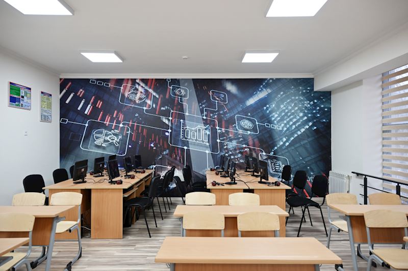 Burada 50-dən çox sinif otağı, fizika, kimya və biologiya laboratoriyaları, informatika və STEAM, hərbi təlim, tibb və əmək təlimi otaqları, kitabxana, yeməkxana, akt və idman zalları, həmçinin açıq idman meydançası yaradılıb.