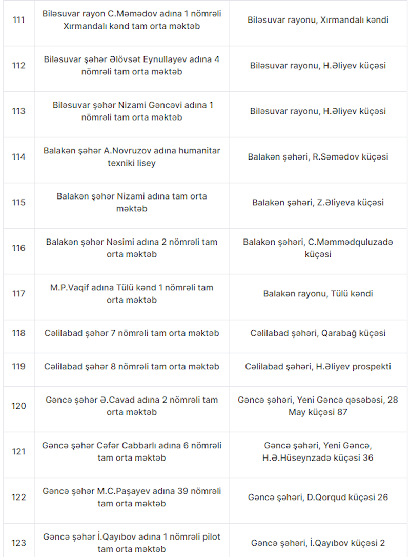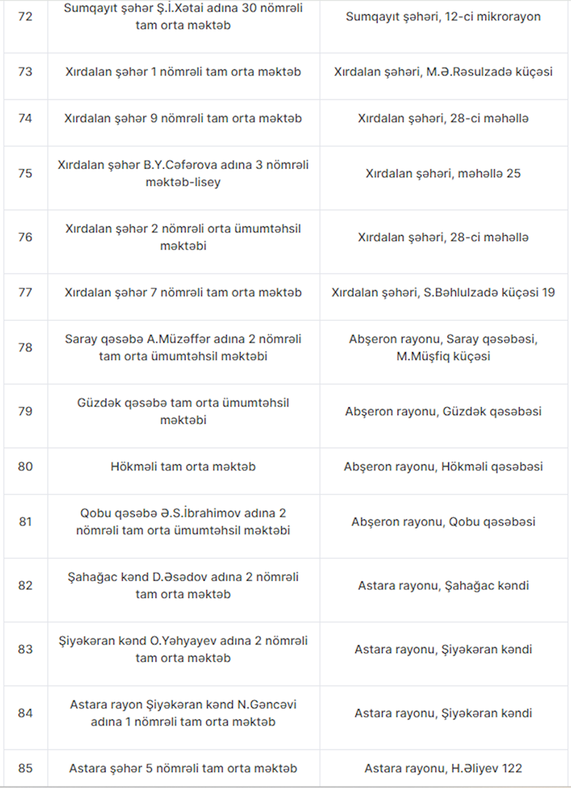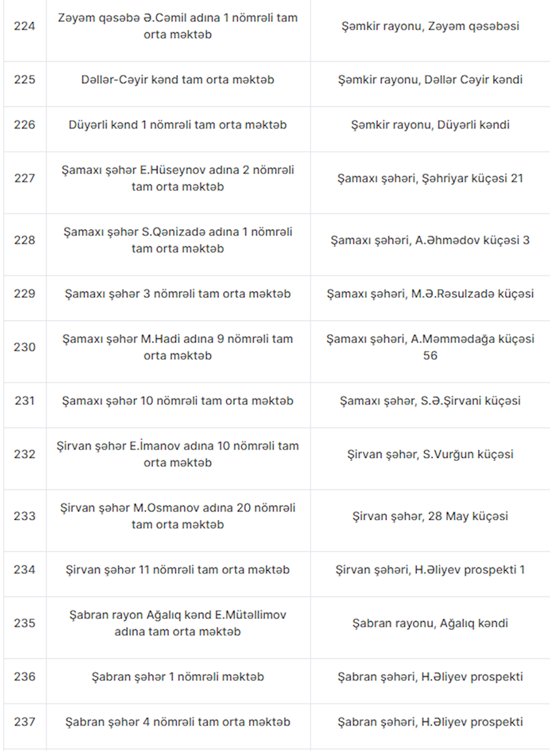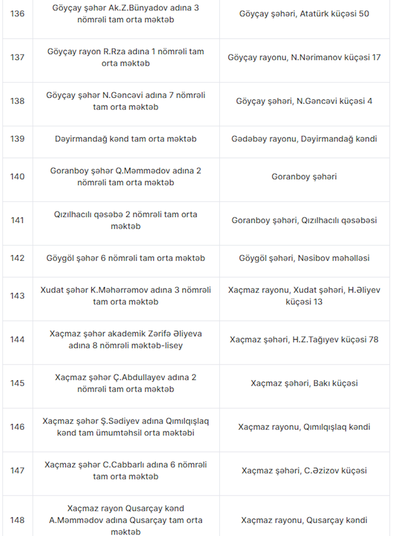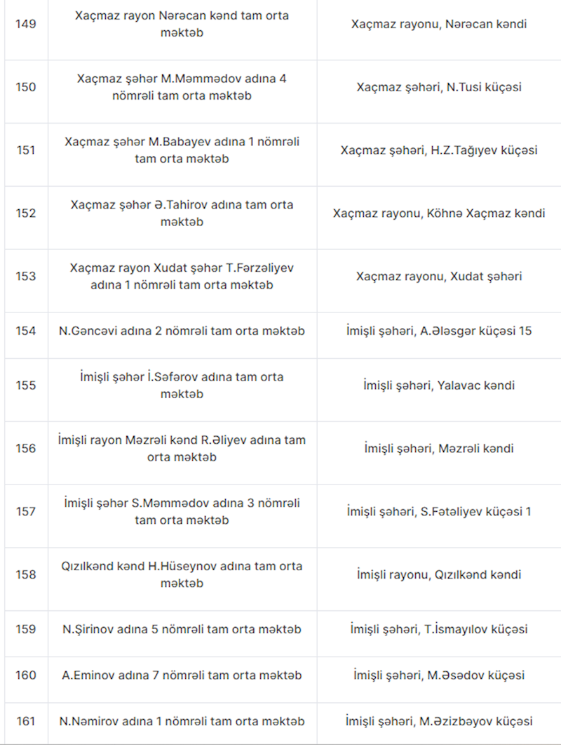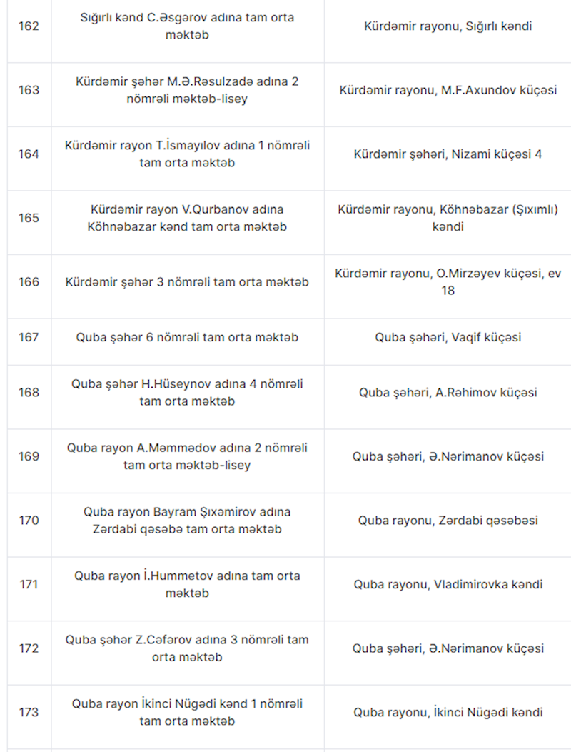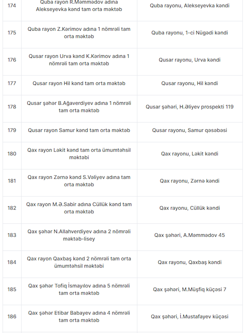 Nöqsanlar aşkarlanan məktəblərin siyahısını təqdim edirik: