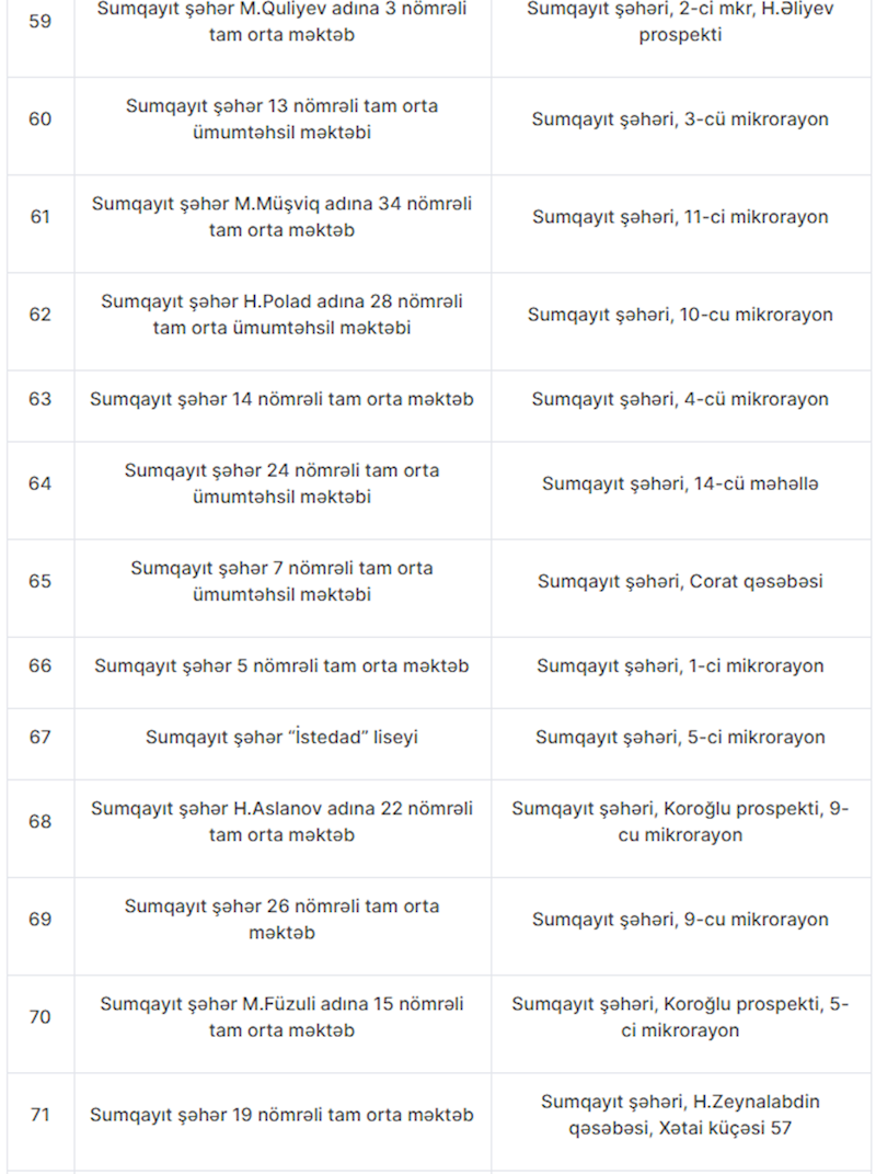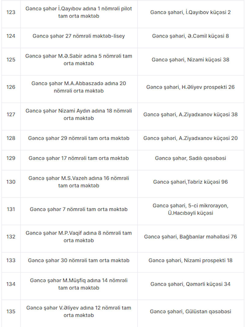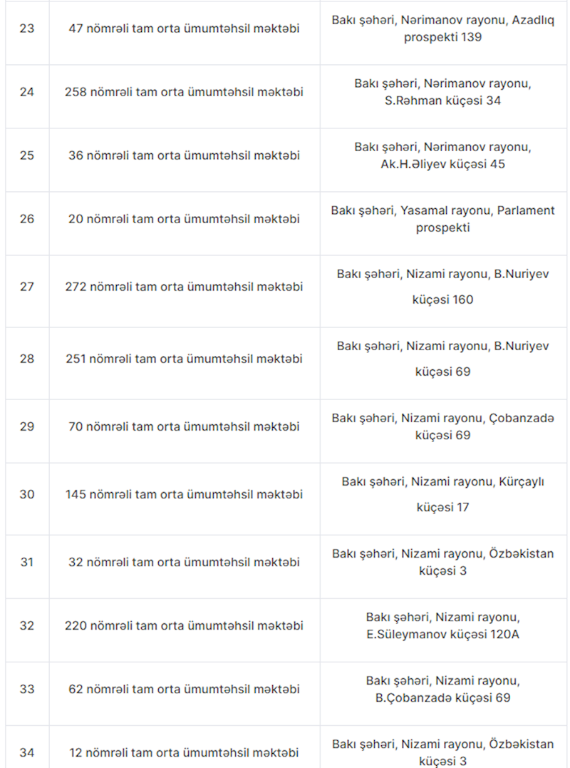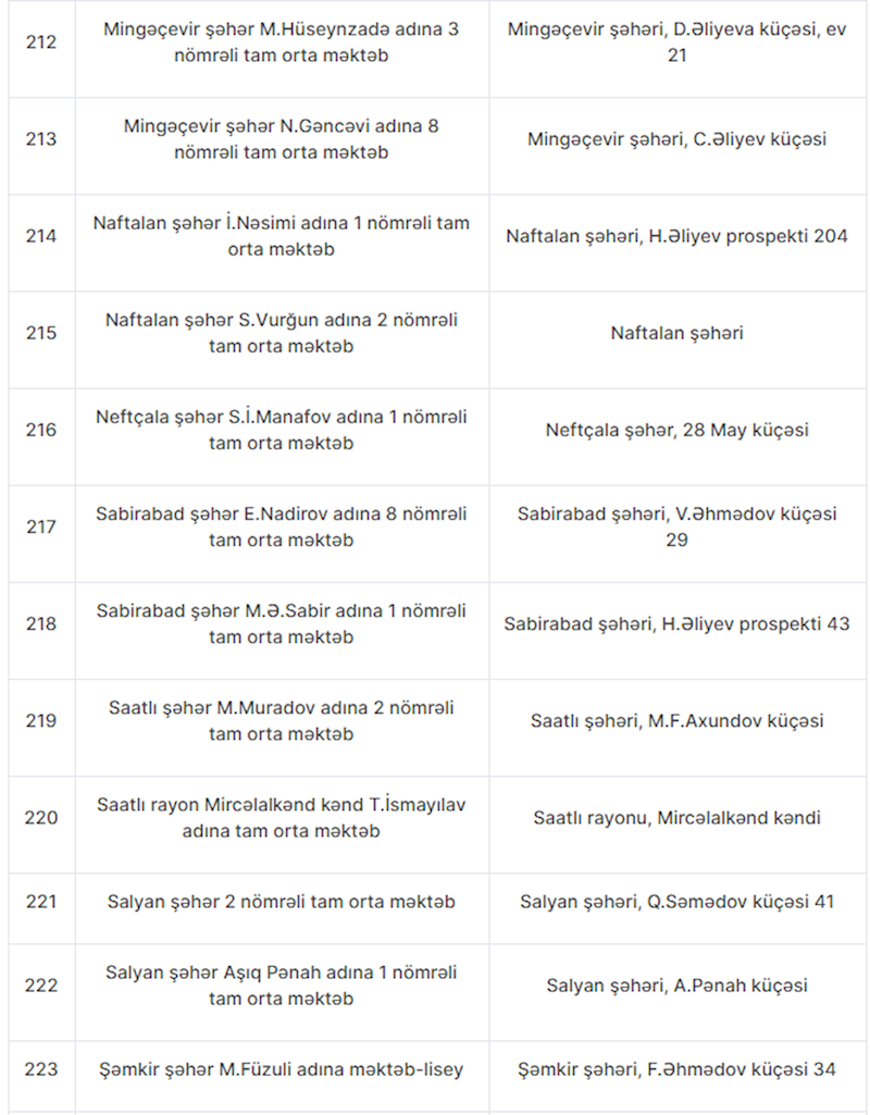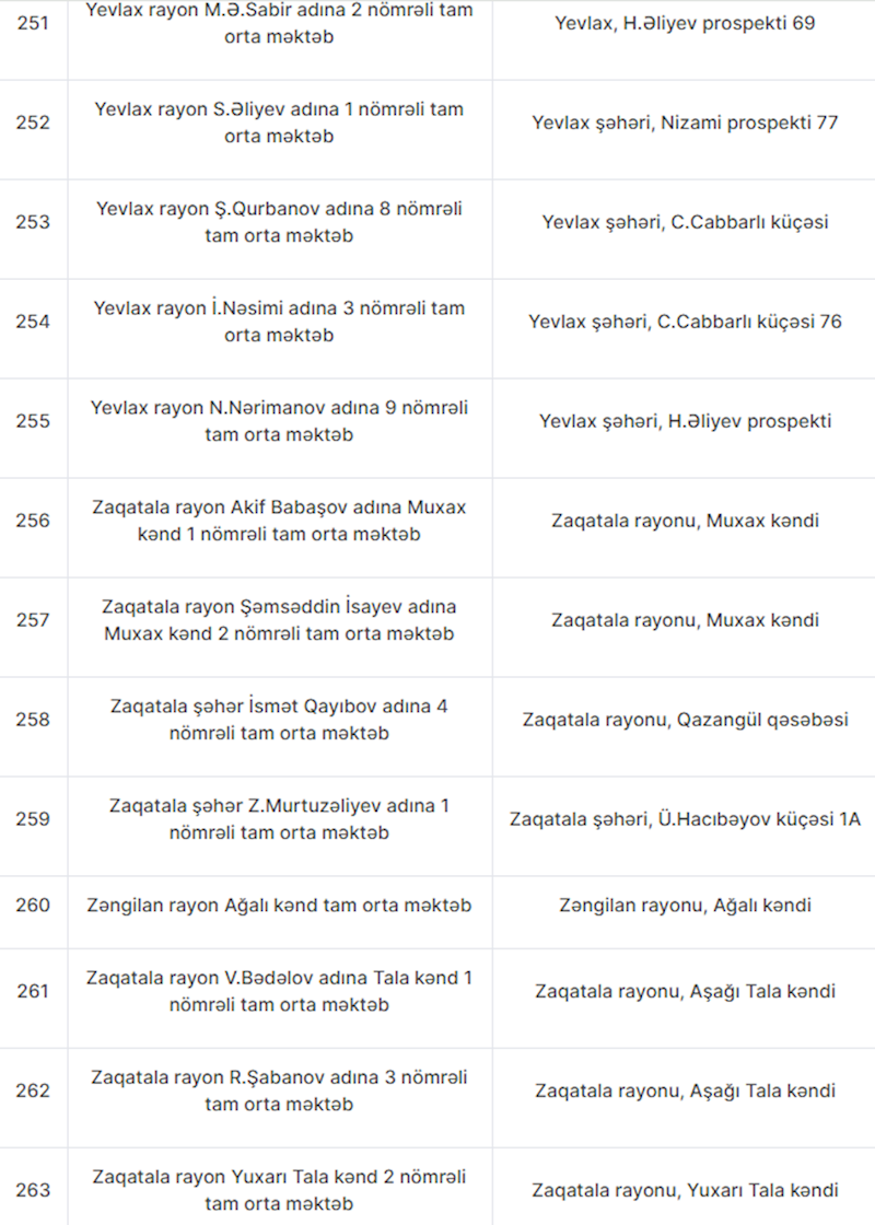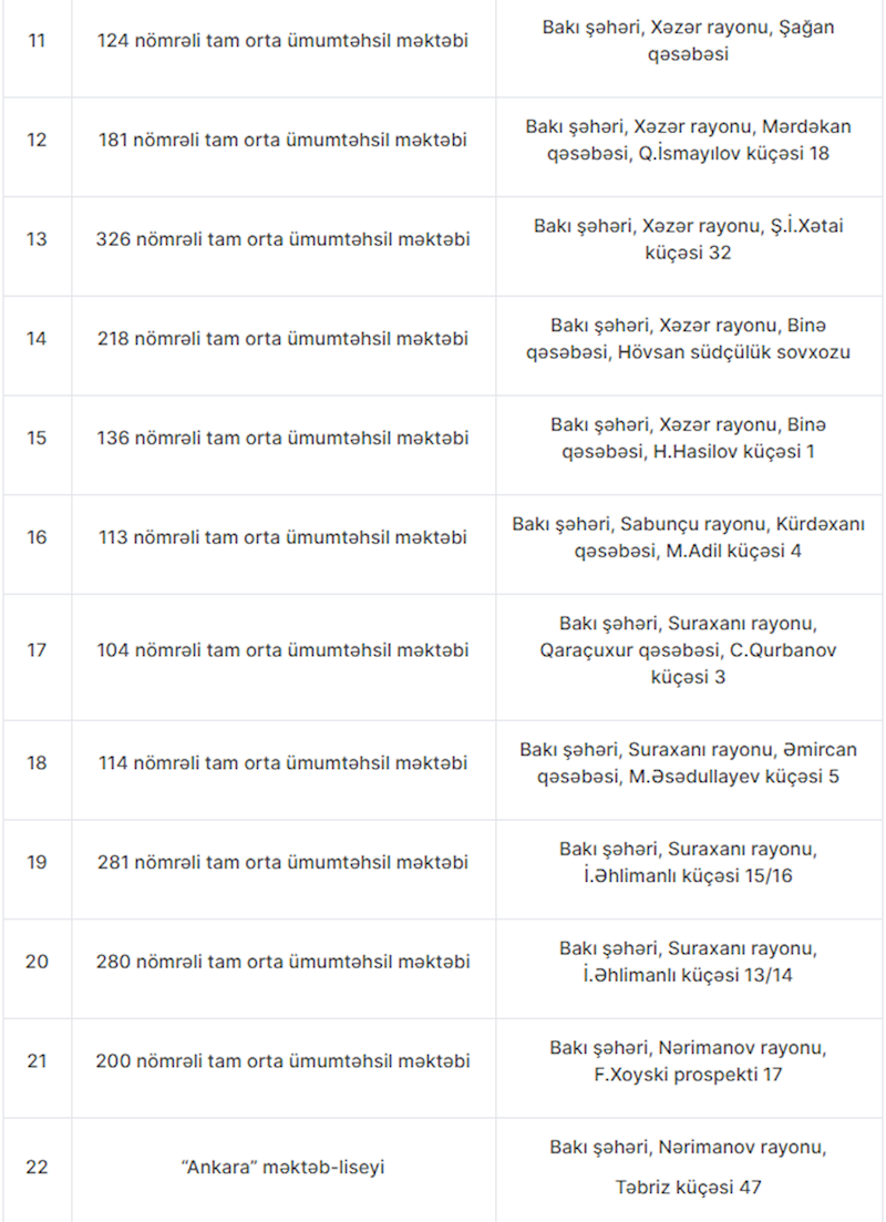 Nöqsanlar aşkarlanan məktəblərin siyahısını təqdim edirik: