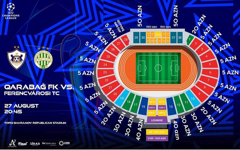 Следует отметить, что 27 августа текущего года стоимость билетов на матч «Карабах» - «Ференсварош», проходивший на Республиканском стадионе имени Тофика Бахрамова в VIP-секторе, составляла от 50 до 150 манатов.