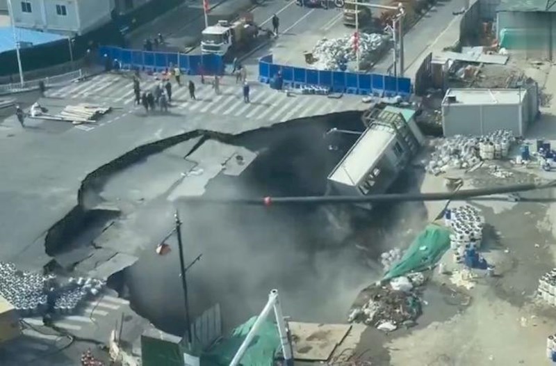 Təhlükəsizlik kameraları tərəfindən lentə alınan görüntülərdə, üzərində piyadaların da olduğu genişzolaqlı yolun anidən çökməsi müşahidə olunur.